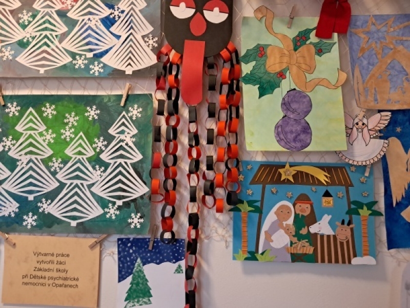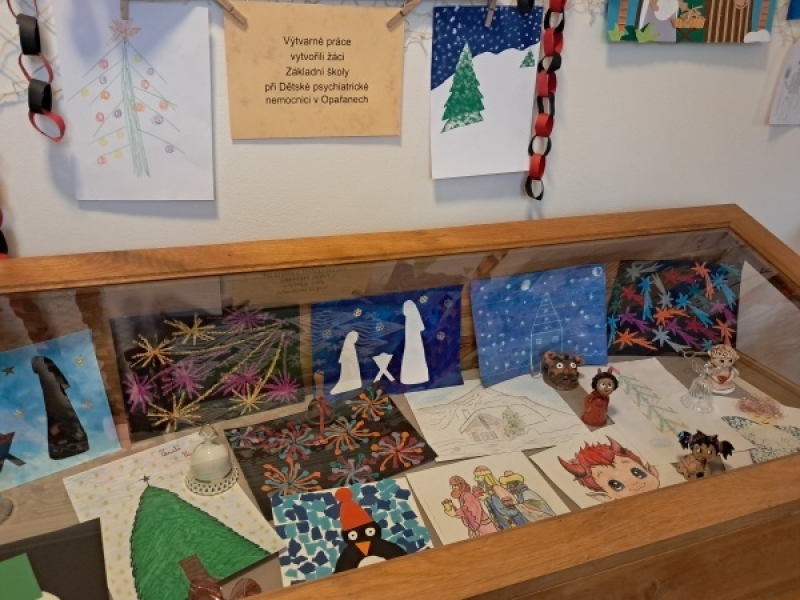 Fotografie z výstavy výtvarných prací žáků v muzeu v Milevsku.